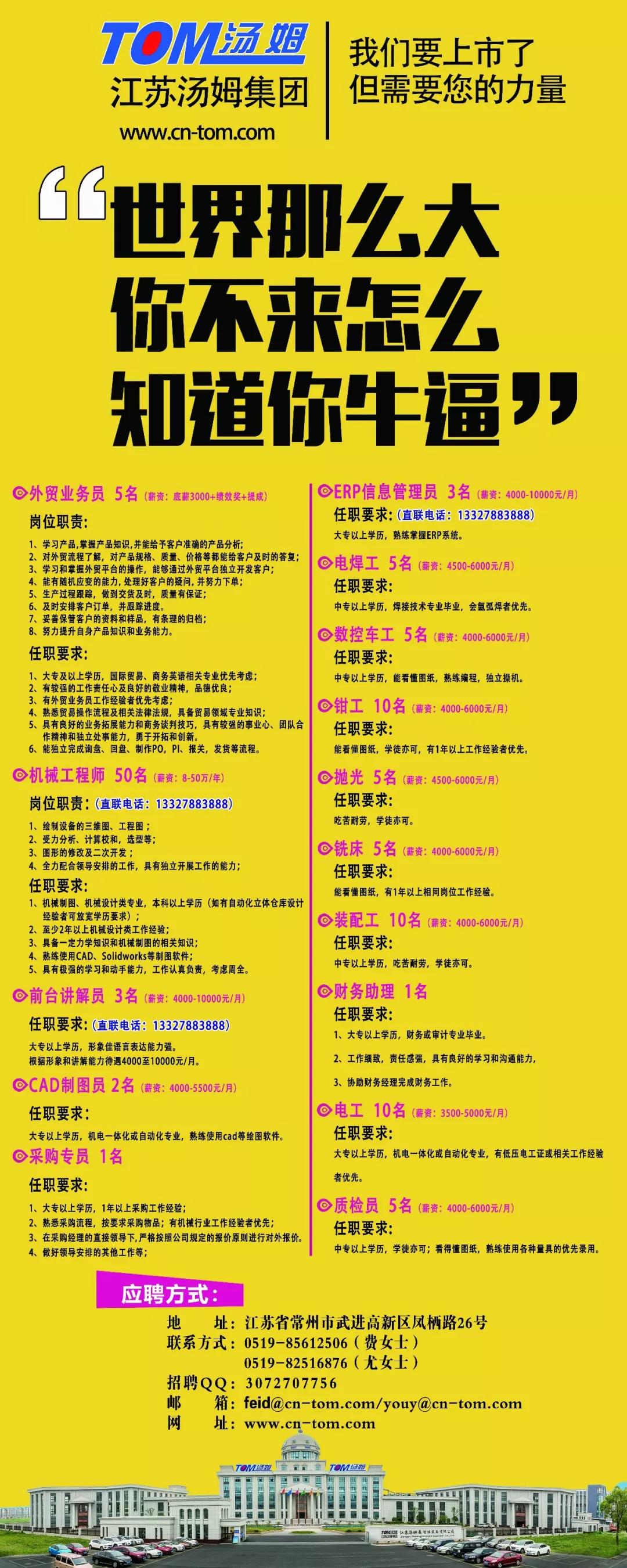【誠聘】江蘇湯姆集團誠聘英才,只要你夠出色,我們就會給你最好的平臺!