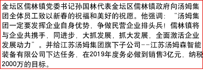 金壇區(qū)儒林鎮(zhèn)政府領(lǐng)導(dǎo)班子來湯姆集團(tuán)拜年!