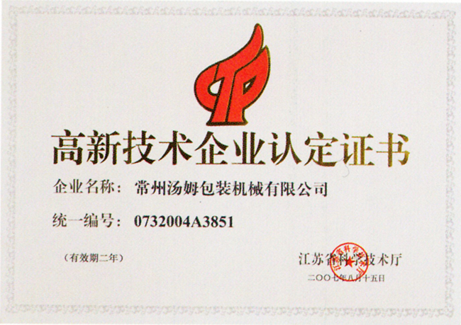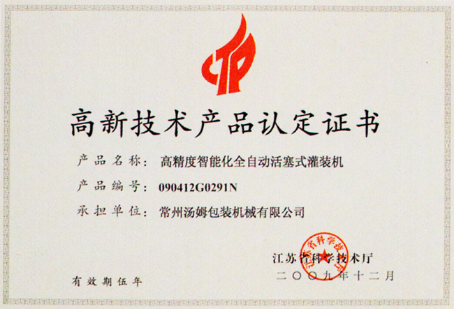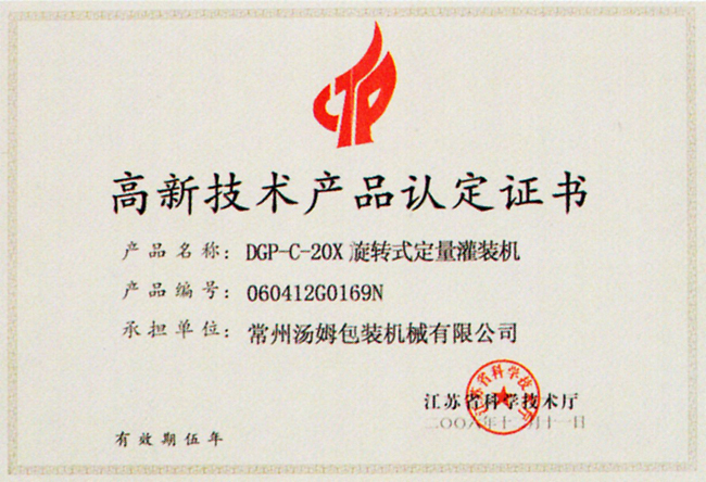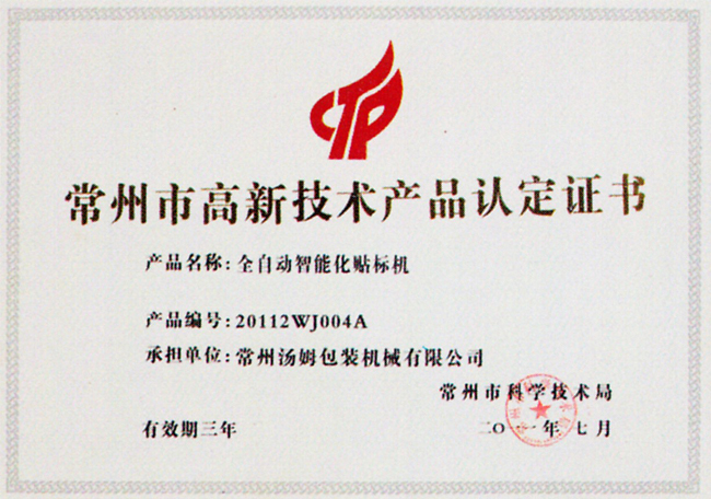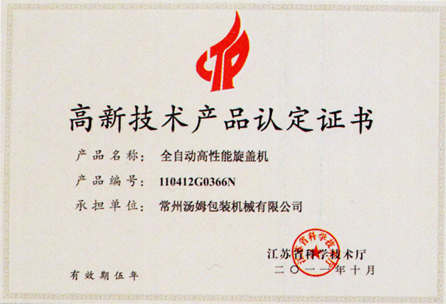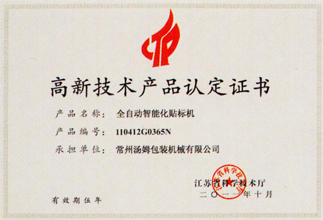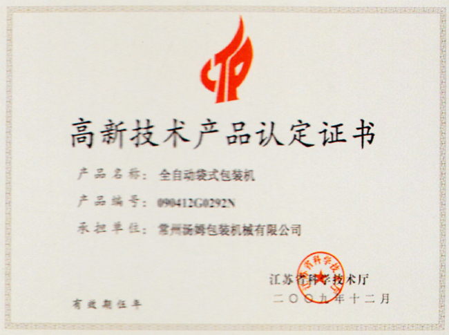 高新技術(shù)產(chǎn)品認(rèn)定證書