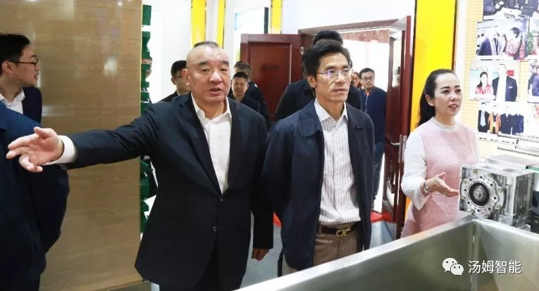 11月7日早上,常州市工信局局長朱志洪,秘書長李皓,常州市武進區(qū)副區(qū)長徐治國等領(lǐng)導(dǎo)一行光臨江蘇湯姆智能裝備有限公司參觀指導(dǎo)。 江蘇湯姆集團董事長湯建華攜集團總裁張正寶,湯姆森總經(jīng)理王芳熱情地接待了各位領(lǐng)導(dǎo),并代表湯姆集團720名員工對朱局長一行的到來表示歡迎。 市局領(lǐng)導(dǎo)在董事長湯建華、總裁張正寶、湯姆森總經(jīng)理王芳的帶領(lǐng)下,參觀了湯姆集團的展廳,對展示的每一條灌裝線進行詳細了解,并給予贊賞。 朱志洪局長是專家級領(lǐng)導(dǎo),在了解了江蘇湯姆集團現(xiàn)狀后,首先對企業(yè)的技術(shù)創(chuàng)新給予了充分肯定,而后,又以非常專業(yè)的眼光指出不僅要做出創(chuàng)新和高科技的產(chǎn)品,更要求湯姆要努力成為智能裝備領(lǐng)域系統(tǒng)解決方案的供應(yīng)商,要把目光投向高端的消費行業(yè),如精細化工、醫(yī)藥、食品等。董事長湯建華在聽取朱志洪局長的建議后,表示認同和感謝。