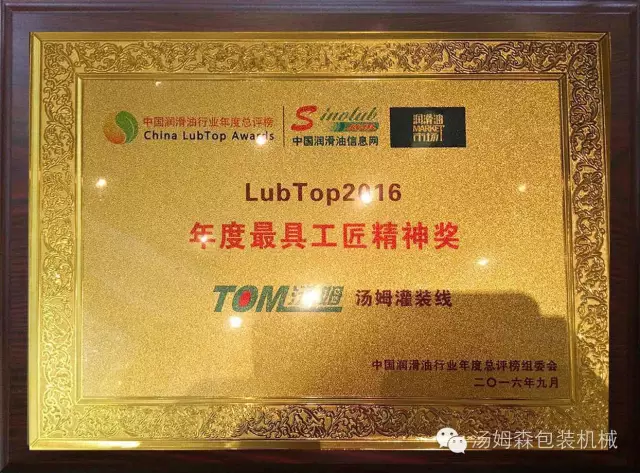 發(fā)布日期: 2016-09-29 分類: 湯姆動態(tài) 閱讀次數(shù): 2383【喜訊】特約冠名單位江蘇湯姆集團(tuán)榮膺 LubTop2016年度行業(yè)供應(yīng)鏈金牌服務(wù)商和LubTop2016 年度具工匠精神獎