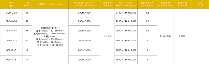 DGP-C直列式常壓灌裝機(jī)技術(shù)參數(shù)