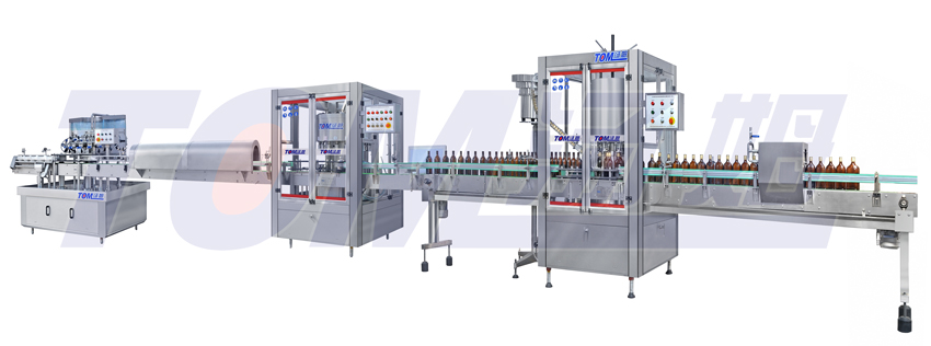 本流水線適用普通500ml 回收瓶的白酒、黃酒、醬油、醋的灌裝、壓(旋、扎)蓋、貼標(biāo),對方瓶、扁瓶都適用,特殊異形瓶可定做。