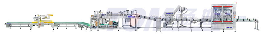 本線適用于食用油中小型企業的小包裝、中速包裝,生產線配置4-12頭伺服控制活塞式灌裝機、全自動壓蓋機、貼標機、開箱機、裝箱機和封箱機。