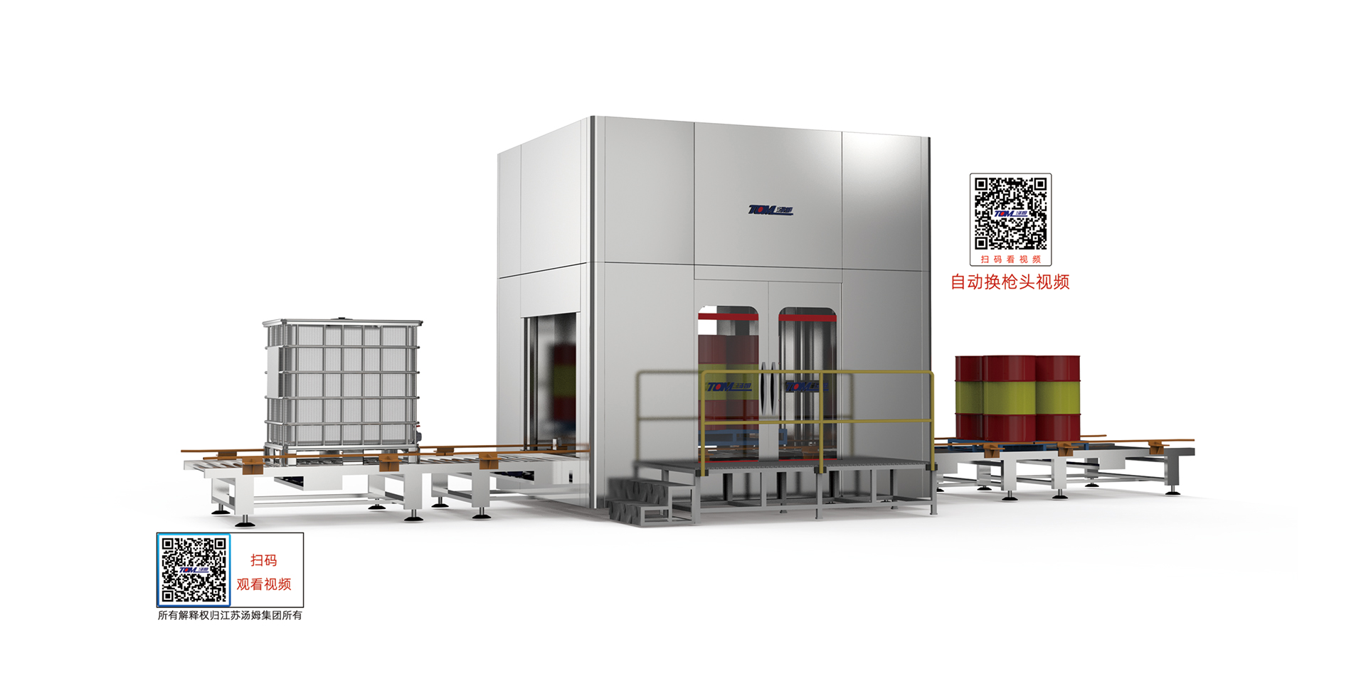 產(chǎn)品名稱:200L桶/IBC噸桶復(fù)合灌裝線(自動(dòng)換槍頭:6把)
